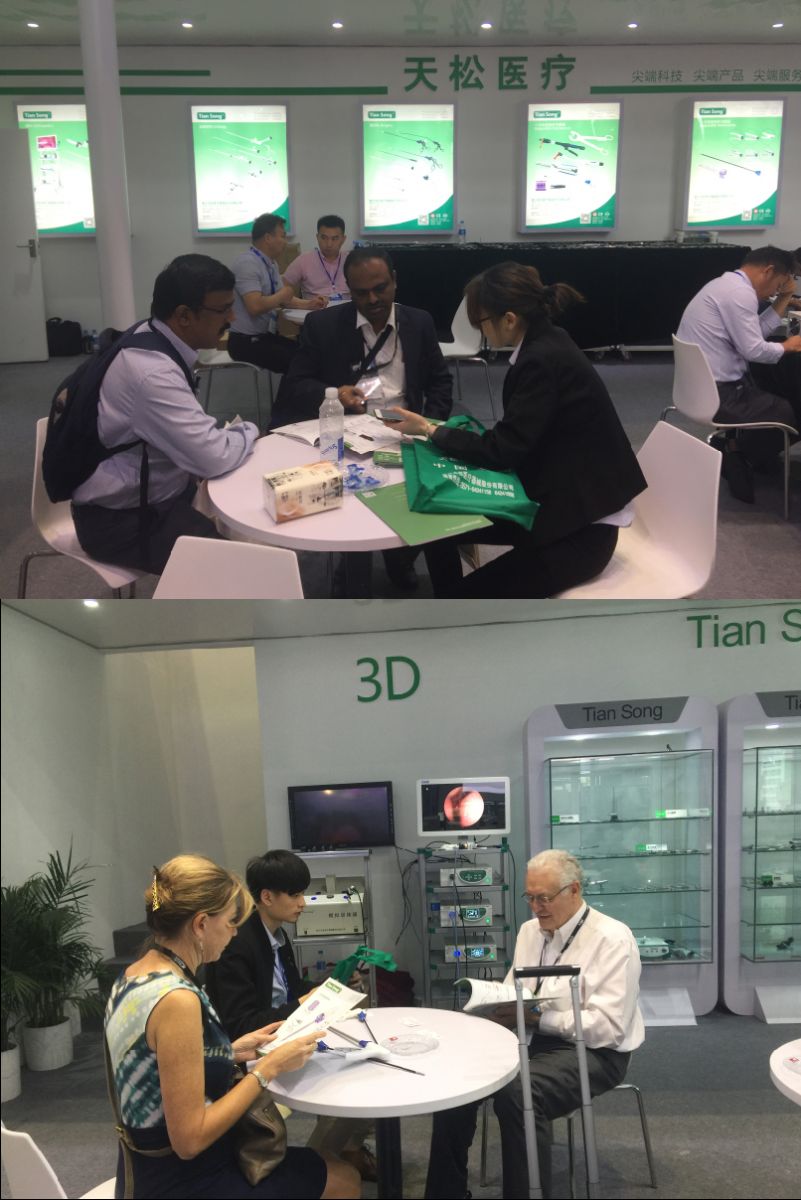 2017年5月15日-18日,天松医疗组团参展了在国家会展中心(上海)举办的第77届中国国际医疗器械(春季)博览会,公司此次展会共组织20余人参加,展台面积108平米,展示了公司最新的产品和技术,展出了3D和4K高清摄像系统、还有腹腔镜、胸腔镜、鼻窦镜、膀胱镜、关节镜手术系统等主打产品。热情接待了来自国内外业界朋友,与买家进行了面对面沟通,直接了解了他们的需求以及采购动向,公司以可靠产品、优质服务、科技领航的形象得到业内的普遍认可,全面展示了天松医疗自主品牌的魅力。